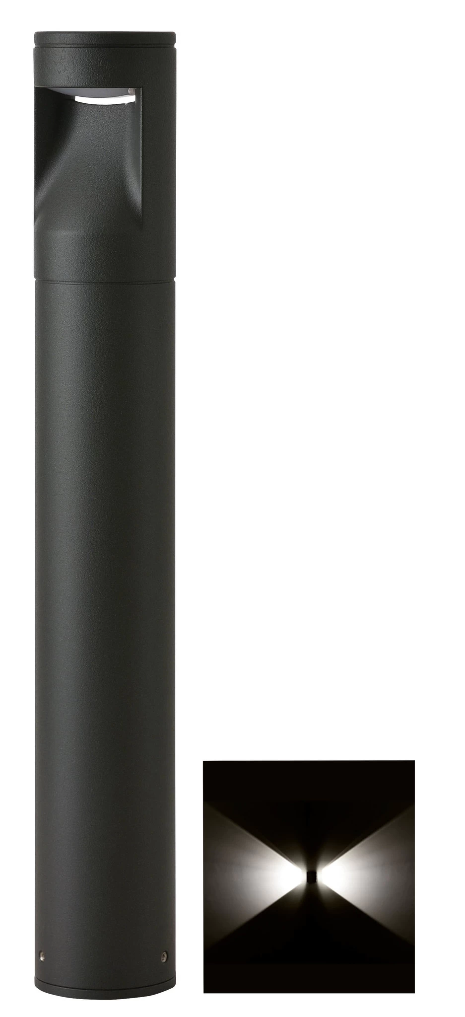 Staande tuinlamp Lako is verkrijgbaar in verschillende varianten. Deze variant heeft een hoogte van 40cm en heeft een dubbele ledunit, waarmee hij twee kanten op schijnt. Er zijn meerdere hoogtes en Lako’s met enkel licht verkrijgbaar.