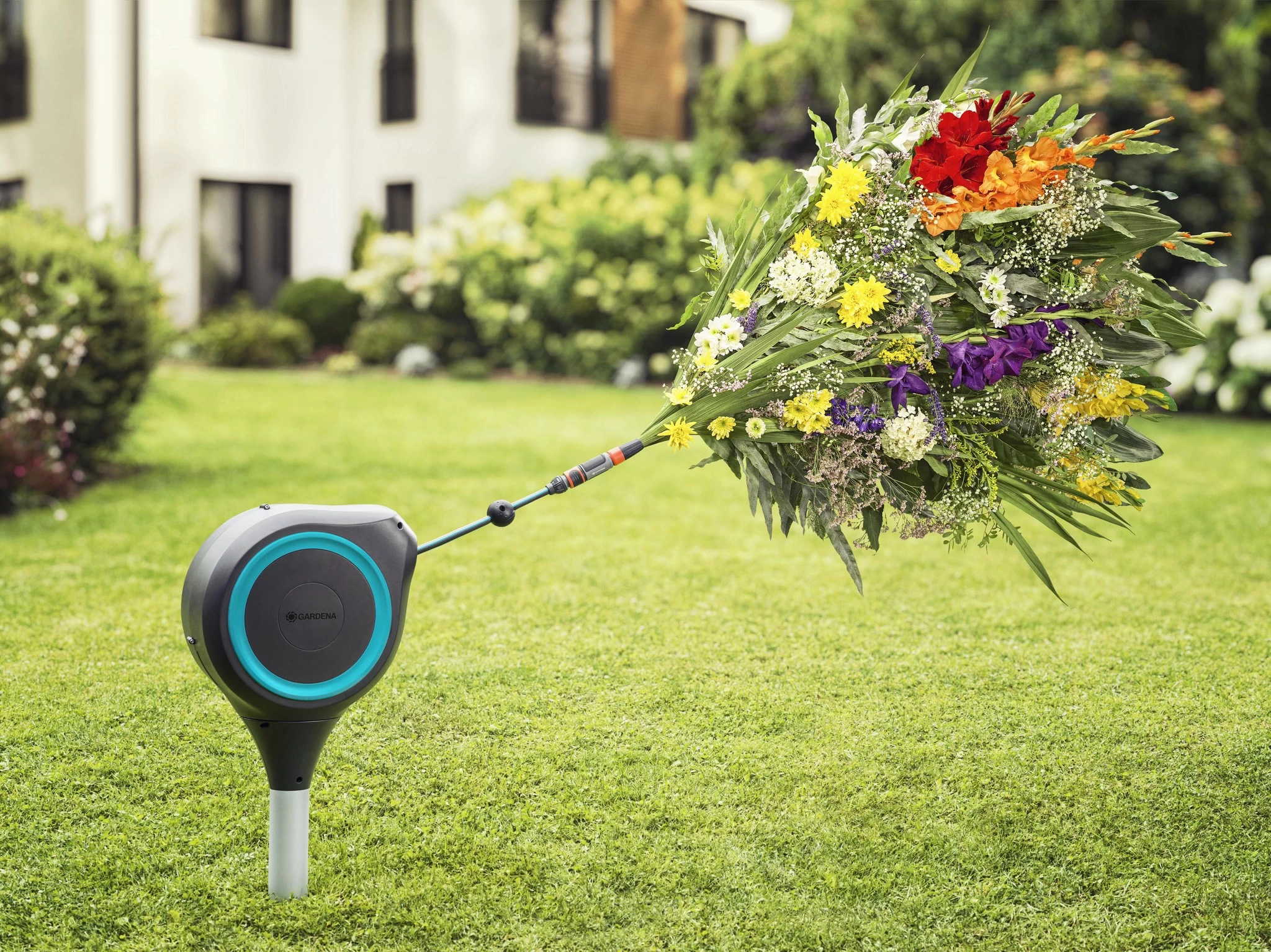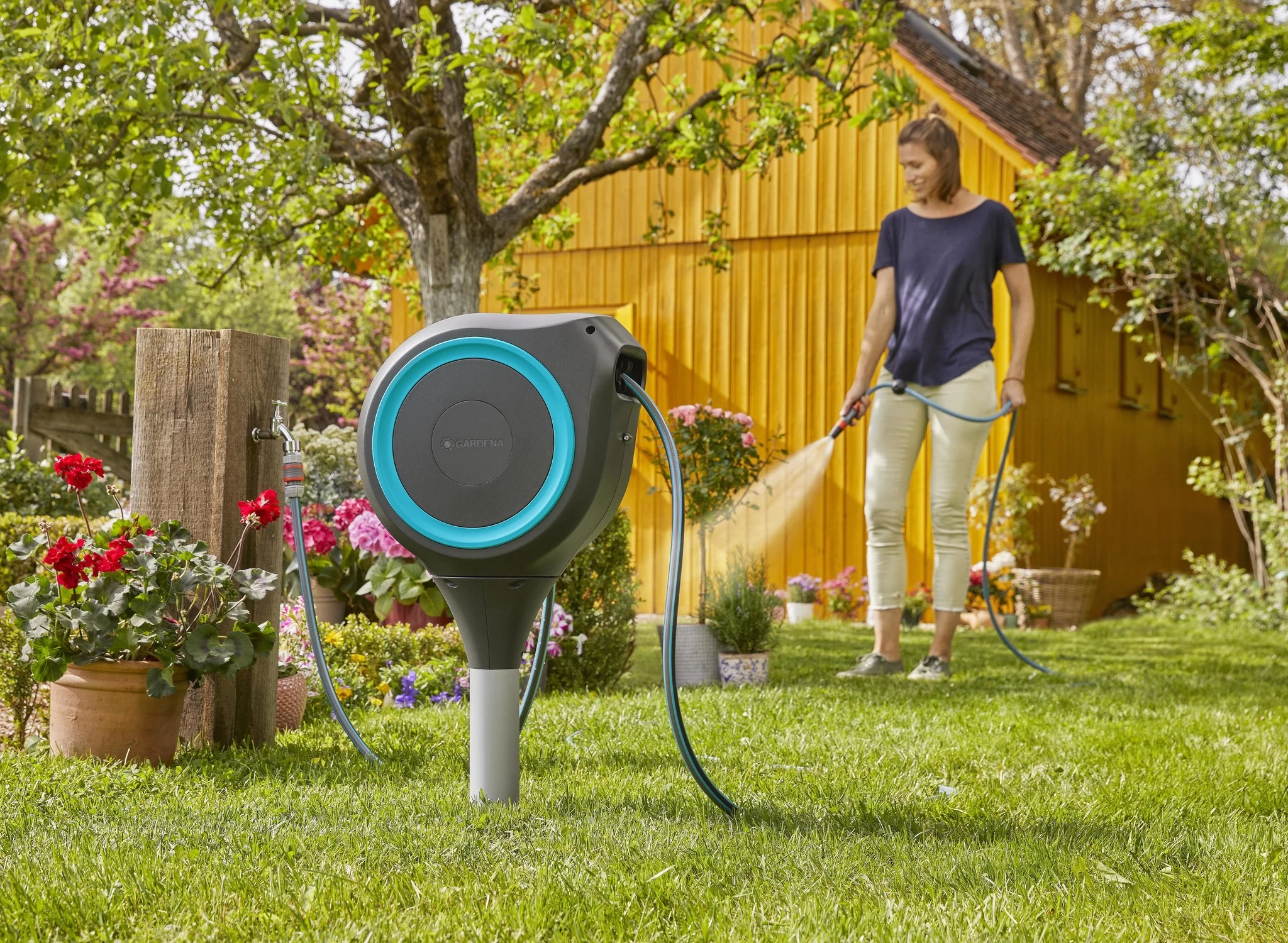 Naast de flexibele slangenbox worden alle benodigde Original GARDENA System onderdelen en montageonderdelen, een flexibele aansluitslang en een GARDENA sproeier met twee verschillende sproeistraalopties bijgeleverd. Het hoogwaardige tuinproduct wordt geleverd met vijf jaar garantie van GARDENA.