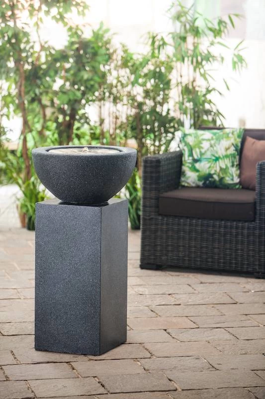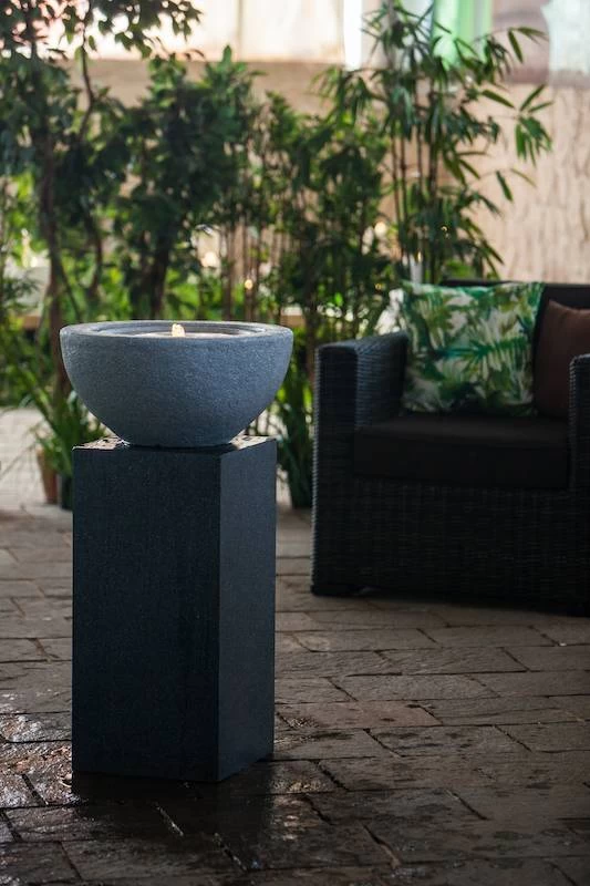 deze fontein van Heissner is een hoge sokkel van graniet, ideaal voor onder de halve bol terrasfonteinen. De kleur van deze Heissner Sokkel Toren Fontein: zwart. Met versterkte kabeldoorvoer. Afmeting: 39x39x68 cm.