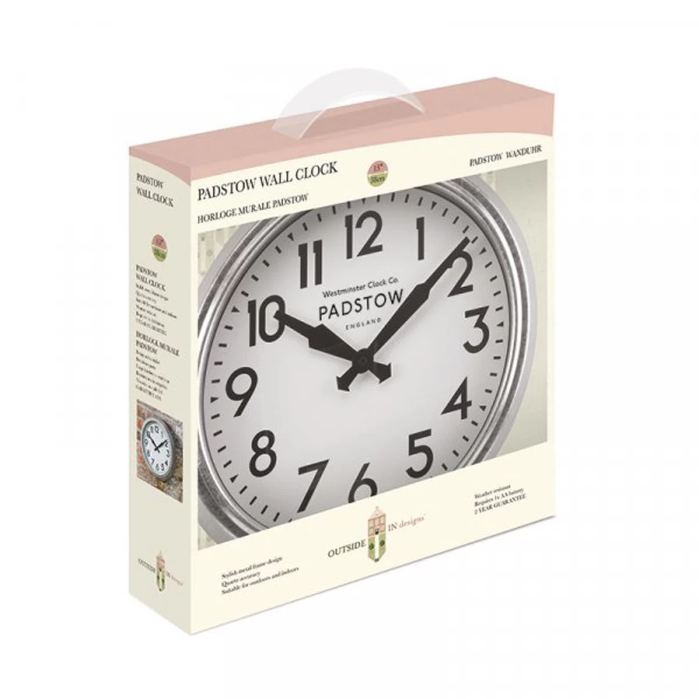 Padstow wandklok heeft een metalen wandontwerp en staat mooi in iedere tuinomgeveing. De gebruikte materialen zijn weerbestendig en daarom is deze klok zowel geschikt voor binnen als voor buiten.