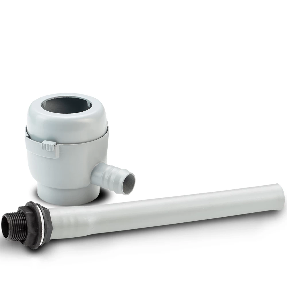 Om de vulautomaat aan te sluiten, dien je een stukje uit de regenpijp te zagen ter hoogte van de bovenkant van de regenton. Hier zet je vervolgens de vulautomaat tussen en deze verbind je met het bijgeleverde slangetje met de regenton.